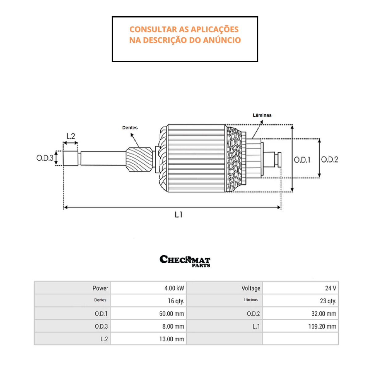 OEM: 6033AD0285 | CK.100005 | 20728 | 6033AD4013 | 6033AD4080 | Especificação: Voltagem – 24V | Diâmetro Coletor – 32.00 mm | Comprimento – 169,00 mm | Diâmetro – 60 mm | Laminas – 23 | Dentes – 16