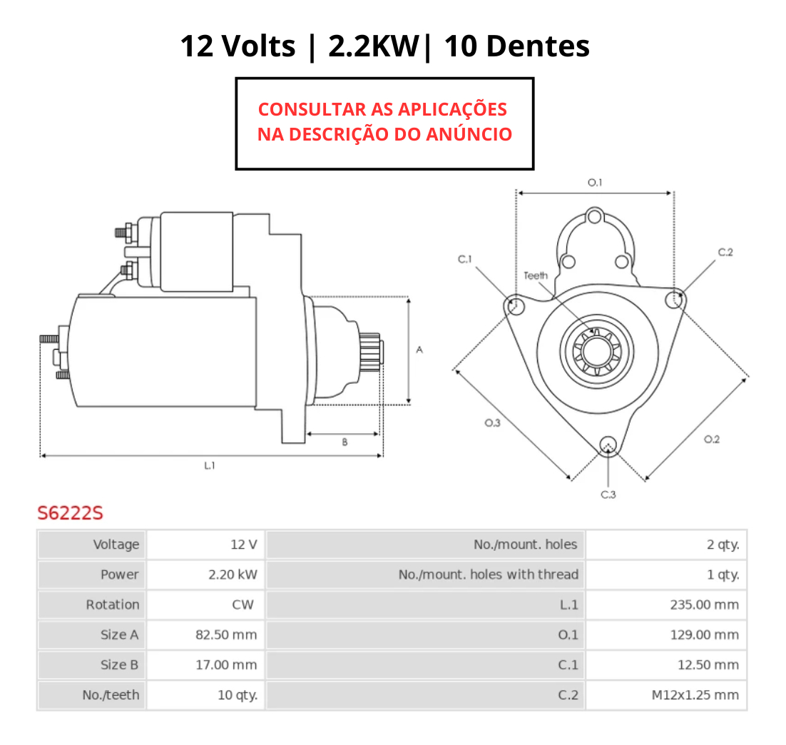Especificação: 12 Volts | 10 Dentes