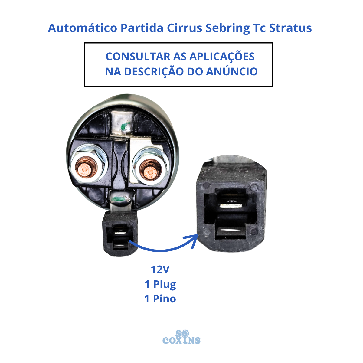 Especificação: 12Volts | Terminal da Bateria: M8 | Terminal do Motor: M8 | Terminal de Ignição: M6 Post